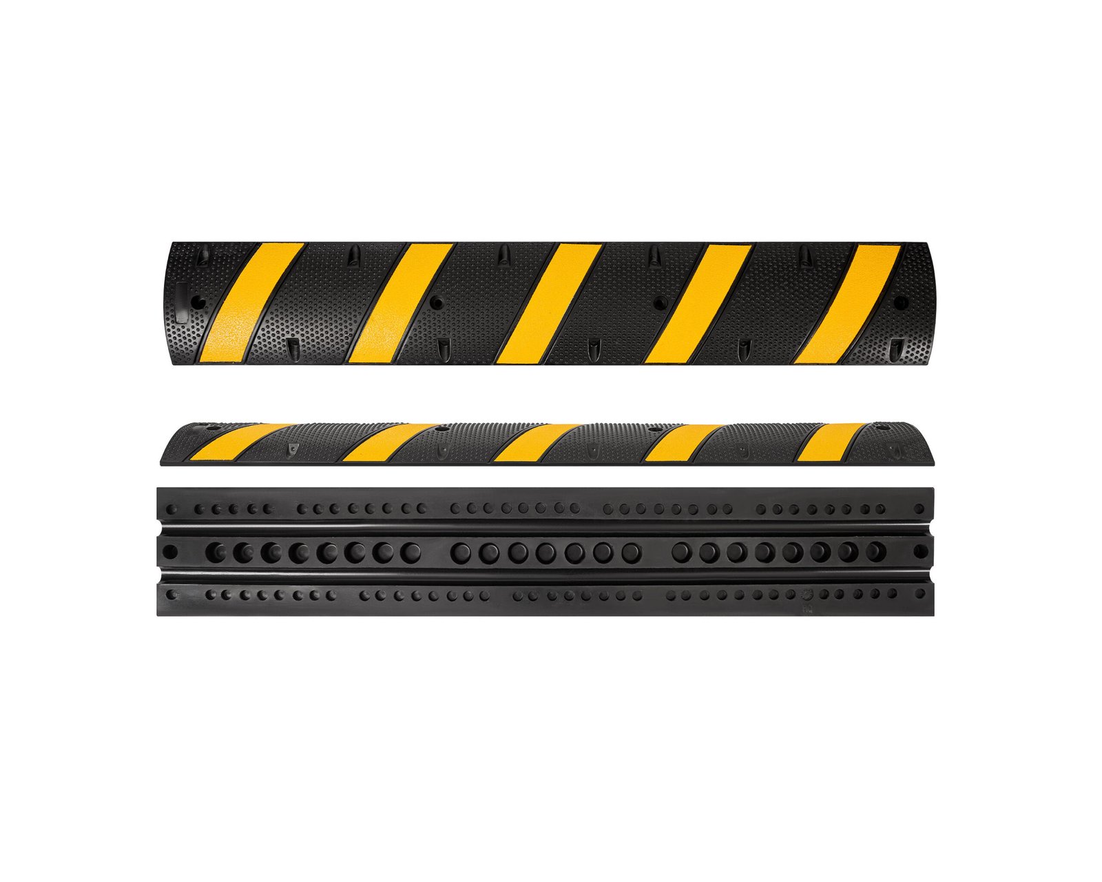 - EASY TO INSTALL – Featured Modular Design and Pre-dilled holes. The pre-drilled holes to install speed bumps on gravel, asphalt, and concrete roads conveniently. Modular design allows multiple cable ramps to be connected to cover the longer cables. You Can Get: 2 end caps, 1 pcs 72’’ speed bump, and 6 bolts