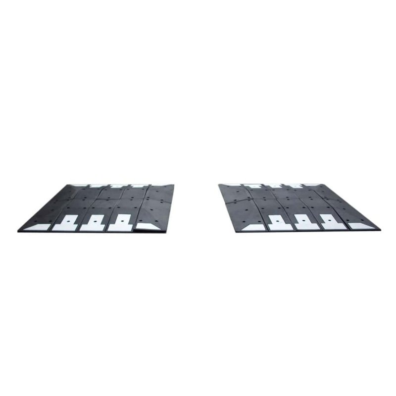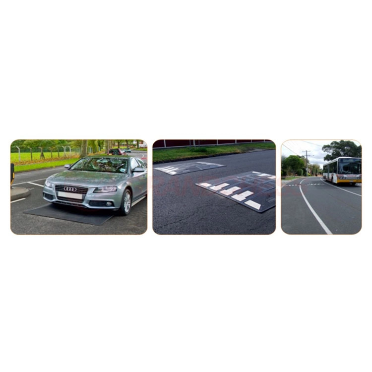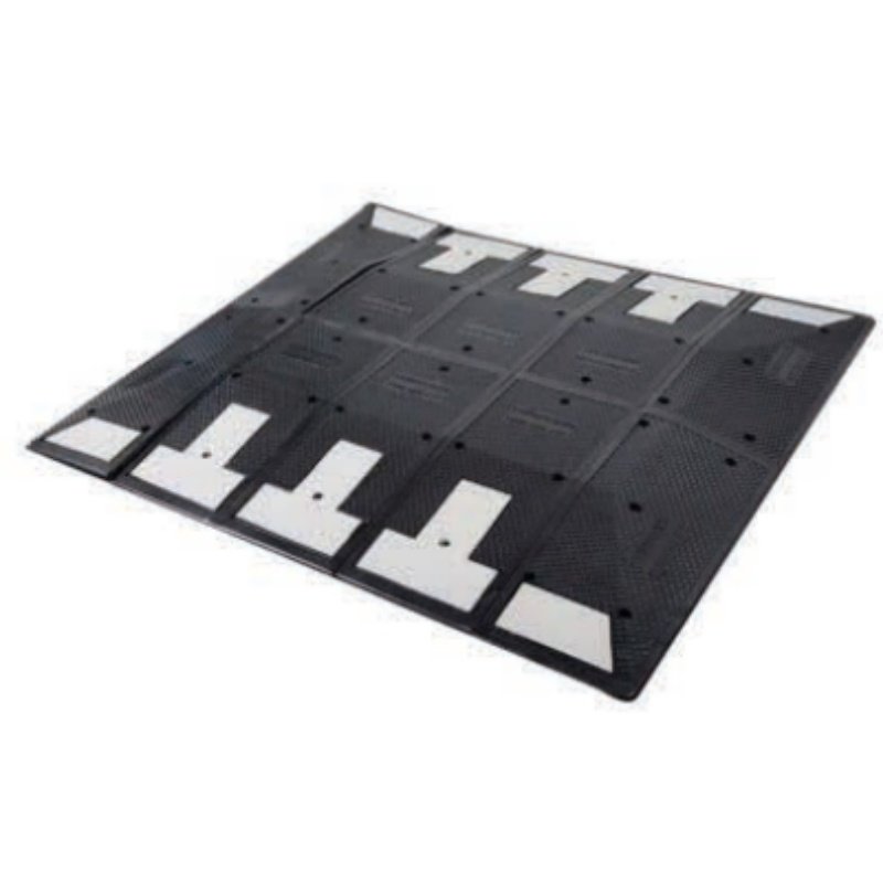 The ES-SC500SC durable speed cushion consists of 6 segments and is particularly user friendly for public transport. At reduced speeds, buses can comfortably cross the threshold of the speed cushion. The special non-slip proprietary traction point surface meets the European SRT 48 standard. Speed cushions and bumps are made from 80% UV resistant vulcanized recycled rubber with reinforcing fibers and 20% natural rubber.