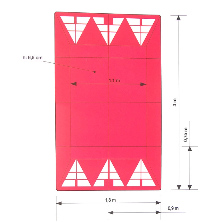 ES-SC900SC durable speed cushion consists of 6 segments and is particularly user friendly for public transport. At reduced speeds, buses can comfortably cross the threshold of the speed cushion. The special non-slip proprietary traction point surface meets the European SRT 48 standard. Speed cushions and bumps are made from 80% UV resistant vulcanized recycled rubber with reinforcing fibers and 20% natural rubber. At reduced speeds, buses can comfortably cross the threshold of the raised table. Easily bolts down and connects with H connectors, and rubber bungs to conceal the fixings.